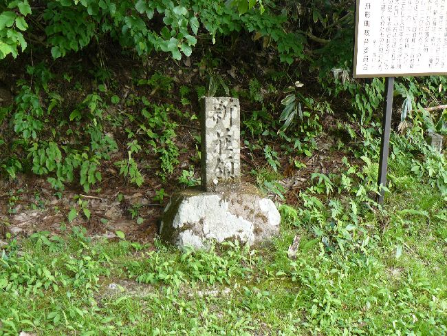 | 藩境塚(猿羽根峠)概要: 藩境塚は石柱で造られたもので「新庄領」の文字が刻み込まれています。当初は上部に「従是北」の文字があったとされますが現在その部分は破損しています。石柱の建立年は不明ですが江戸時代初期に猿羽根峠周辺が新庄藩領時代に建てられたと推定されています。その後、新庄藩領の要地である大石田・尾花沢領2万石と山形藩谷地郷2万石が交換により山形藩領となり、その後は天領となり、大石田と尾花沢は新庄藩に戻る事はありませんでした。新庄藩戸沢家にとっては最上川舟運の最大級の川湊がある大石田と日本三大銀山に数えられた延沢銀山(銀山温泉:国指定史跡)がある尾花沢は手放し難い要地でしたが、藩主である戸沢家は幕政に近い山形藩主鳥居家(20万石)に取入って松岡藩4万石から新庄藩6万石(後6万8千石)に取り立てられていた経緯から鳥居氏の申し出に断る事が出来ず領地交換に応じたと考えられています。藩境塚はこれら経緯が示す貴重なものとして舟形町指定史跡に指定されています。