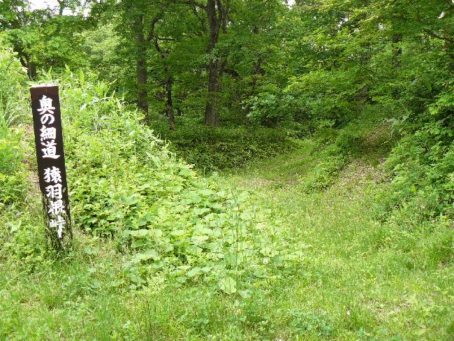 | 猿羽根峠(船形町)概要: 猿羽根峠の歴史は古く奈良時代に定められた延喜式の中で「避翼駅」として記述されています。陸奥国府だった多賀城(宮城県多賀城市)から出羽国府の城輪柵(山形県酒田市)、や秋田城(秋田市寺内)、払田の柵(秋田県大仙市)など主要施設へ続く重要な街道(官道)だった思われます。江戸時代になり宿駅制度が確立すると羽州街道が筆頭大名だった秋田藩の佐竹氏が中心となり整備され、特に猿羽根峠周辺の街道は「佐竹道」と称されました。峠の最高部は最上郡と村山郡の郡境であると同時に新庄藩と山形藩や天領との藩境でもあった為、境界石が設置され、付近には一里塚も現存し、「日本三大地蔵」の一つとされる猿羽根山地蔵尊堂も鎮座しています。又、元禄2年(1689)6月1日(現在の7月17日)には松尾芭蕉が奥の細道行脚の際、大石田を出立しこの猿羽根峠を越え新庄に向ったとされます。曽良日記によると芭蕉と共に馬を借受、猿羽根峠を越え舟形に至り船大石田の俳人高野一栄、高桑川水に阿弥陀堂まで見送られ、そこからは徒歩で新庄に入った事が記載されています。明治時代にはイギリス出身の女性旅行家、紀行作家であるイザベラバードが羽州街道を北上した際、猿羽根山峠を通過し好印象を持った事が著書である「日本奥地紀行」に記載されています。